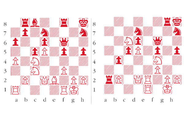 1 d4 Nf6 2 c4 g6 3 Nc3 Bg7 4 e4 d6 5 Nge2 0-0 6 f3 c5 7 d5 e6 8 Ng3 exd5 9 cxd5 Nbd7 10 Be2 a6 11 a4 h5 12 Bg5 Qe8 Imaginative but dubious. Black’s idea is to fianchetto his queen! However, the more normal moves 12 … Qa5 or 12 … Qc7 are less complicated and better. 13 Qd2 Nh7 14 Bh6 It is normal good policy for White in the King’s Indian to trade off Black’s aggressive dark-squared bishop. 14 … Qe5 15 Bxg7 Qxg7 16 Nf1 Pre-empting the disruptive advance … h4 and … h3. White’s manoeuvres, though strategically justified are somewhat time-consuming. Therefore, Black feels that he can strike at once in the centre to gain dynamic counterplay. 16 … f5 17 exf5 gxf5 18 Ne3 Kh8 Not 18 … f4 19 Nc4 Qxg2 20 0-0-0 when White’s threats are overwhelming. 19 Nc4 Qf6 20 0-0 Rb8 (see diagram 1) 21 Rfe1 Normally White would inhibit Black’s proposed expansion on the queenside by means of 21 a5. Ivanchuk, however, feels that his chances on the other wing allow him to ignore this disruptive thrust. 21 … b5 22 axb5 axb5 23 Na5 b4 24 Nb5 Ba6 25 Nc7 Bxe2 26 Rxe2 Rg8 27 Nc6 It is rare to see white cavalry so fearsomely entrenched in the opposite camp. This game might be seen as an object lesson in the advantages of centralisation over wing manoeuvres. 27 … Rbc8 28 Ne6 Ra8 29 Rae1 Ra2 30 Nf4 (see diagram 2) With multiple threats including Ne7 and Nxh5. 30 … Qg5 31 h4 If now 31 … Qxh4 32 Ne7 threatening Nxg8 as well as Neg6+. 31 … Qg3 32 Re6 Ndf6 33 Ne7 The long awaited invasion takes place. White threatens Nxf5 as well as Nxg8. 33 … Rga8 Forlornly hoping for 34 Rxd6 Rxb2 35 Qxb2 Qxe1+ when Black wins. But White has something far stronger. The last chance was 33 … b3. 34 Nfg6+ Black resigns After 34 … Kg7 35 Nxf5+ forks Black’s king and queen.