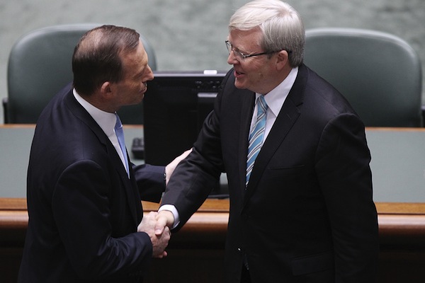 It’s the great irony of our times: Tony Abbott, derided as being an unpopular opposition leader, is in fact the most successful political leader our nation has had in recent years. Or to put it another way: having conned his way into office in 2007 by convincing voters that he was a trendier, touchy-feely version of John Howard, Kevin Rudd is now trying to trick his way back into office by pretending he is tougher than his conservative nemesis. Unable to find a single ‘progressive’ or social-democratic policy in his own or the Gillard government’s swagbag with which to mount a case for re-election, Mr Rudd has attempted to leapfrog to the right of the Coalition.