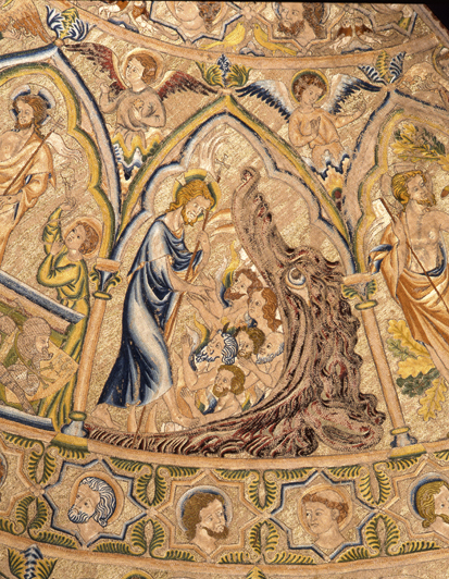 Sadly, hardly any medieval English embroidery survives: it was inherently fragile in any case, and richly decorated, ‘popish’ religious vestments were anathema to the hotter Protestants of the Reformation and, later, the Commonwealth. Much of the stuff was destroyed in the iconoclastic purges of the 16th and 17th centuries: burned to pilfer the gold thread and jewels. Perhaps 35 really serious examples survive — many of them in Italian museums with a couple of extraordinary pieces in London’s V&A. But this is more than enough for us to taste what was not just a luxurious and dazzling medieval indulgence, but also one of English history’s most underappreciated art forms.