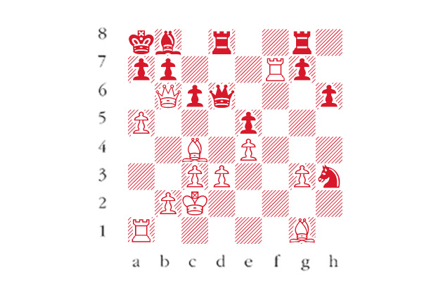 1 e4 e5 2 f4 For a great strategist, such as Rubinstein, reverting to this venerable 19th-century favourite might seem perverse, but Rubinstein allegedly scored over 86% with the King’s Gambit in serious tournament play. 2 … Bc5 3 Nf3 d6 4 Nc3 Nf6 5 Bc4 Nc6 6 d3 Bg4 7 h3 Bxf3 8 Qxf3 Nd4 Black has declined the gambit which he might have accepted with 2 … exf4, in the hope of a seemingly quieter life. If so, his hopes were dashed by Rubinstein’s next move which offers to enter a violent sacrificial maelstrom. 9 Qg3 Qe7 9 … Nxc2+ has been seen many times but is a forced loss for Black after 10 Kd1 Nxa1 11 Qxg7 Rf8 12 fxe5 dxe5 13 Rf1 Be7 14 Bg5 when the white attack is overwhelming. 10 fxe5 dxe5 11 Kd1 c6 12 a4 Rg8 13 Rf1 h6 Having declined the rook offered on move 9, Black now continues in overly defensive fashion. Here 13 … Qd6 is a better defence. 14 Ne2 0-0-0 Again greater activity by means of 14 … Nxe2 would slow down White’s offensive. Now Black loses time with his bishop and his king comes under fire. 15 Nxd4 Bxd4 16 c3 Bb6 17 a5 Bc7 18 Be3 Kb8 19 Kc2 Ka8 20 Rf3 Nd5 21 Bg1 Rubinstein has conceived of a grandiose plan of attack which does not involve accepting counter sacrifices from his intended victim. Nevertheless 21 exd5 was possible, e.g. 21 … cxd5 22 a6 when the opening of the Black king’s position guarantees White a powerful attack. 21 … Nf4 22 Qf2 Bb8 23 g3 Luring the knight to the edge on one side of the board so that White can deal the coup de grace on the other. 23 … Nxh3 24 Rxf7 Qd6 25 Qb6 (Diagram 1) The amazing point of Rubinstein’s strategy — White’s most powerful piece now arrives with explosive power in direct proximity to the black king. If now 25 … axb6 26 axb6+ Ba7 27 Rxa7+ Kb8 28 Rfxb7+ Kc8 29 Ba6 is terminal. 25 … Rd7 26 Bc5 Rxf7 27 Bxd6 Rf2+ 28 Qxf2 Nxf2 29 Bc5 Black resigns