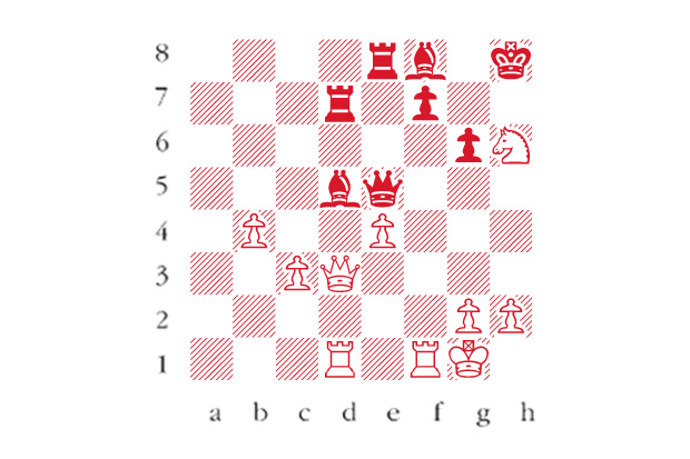 White to play. This position is from Goganov-Motylev, Russian Championship, Novgorod 2013. Black has just captured on d5 with his bishop, after which White has a killer blow. Can you see it? Answers to me at The Spectator by Tuesday 22 October or via email to victoria@spectator.co.uk. The winner will be the first correct answer out of a hat, and each week I shall be offering a prize of £20. Please include a postal address and allow six weeks for prize delivery.