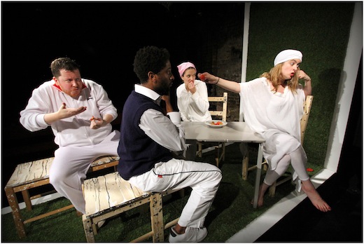 Though Two Caravans only fills a short evening, it would be more effective if it were about 40 minutes long, since Harries’s music, played by a piano and flute, with a momentary accordian, does become tedious in its semi-minimalism, though it has the odd blossoming lyrical passage that makes you crave more. The opera is about immigrant strawberry pickers and a vile exploitative boss, and has some humour and some pathos, but too much that is nothing in particular. Everything is mimed except the consumption of strawberries, a nice tease for the audience. The often vertiginous action on a narrow strip is impressively choreographed; but in this small reverberant space the singers sound too monotonously loud, and their vocal weaknesses are magnified. The one who emerges with distinction is Peter Brathwaite, who is also an accomplished actor.