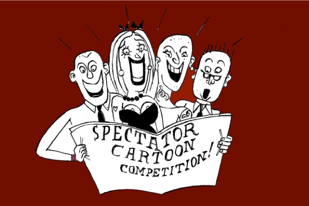 Nine cartoonists are shortlisted for the first ever Michael Heath Award for cartooning. The theme of the contest, sponsored by John Lobb, is ‘Man in Motion’. Work by four of the shortlisted artists is below. We’ll print four more next week, and the winner on 7 December. Thanks to all who entered — and congratulations to those on the shortlist.