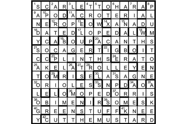 Six of the unclued entries contained the Cluedo character surnames; the remaining unclued entries were therefore a murder weapon and location from the game.