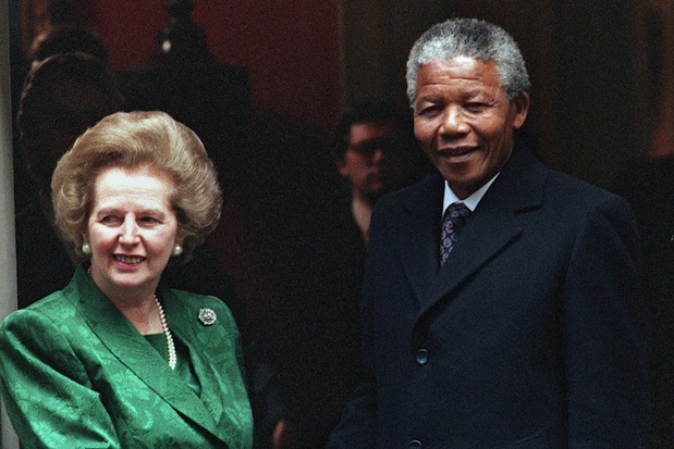 Appearing on Pat Kenny’s Newstalk show here, I take advantage of the moment to talk a bit about Margaret Thatcher and Nelson Mandela. On the BBC World at One the day after Mandela’s death, a man called Pat Hart representing ‘community radio stations’, such as BCfm, said that Mrs Thatcher had called Mandela a terrorist and a ‘grubby little man’. She didn’t, but of course Hart was uncorrected by the BBC. He said that the remark had been made ‘not that long ago’, and in this, at least, he seems to be right. It was made after her death. It sprang forth in a Daily Mirror blog before her funeral and in an internet poster campaign comparing Mrs Thatcher unfavourably with Clement Attlee. It has been endlessly repeated, without evidence. She was certainly no friend to the ANC (which was why they tried, unsuccessfully, to prevent Mandela from seeing her after he came out of prison), but in fact she, of all foreign leaders, was the one who most often personally pressed the release of Mandela on the white regime. I do not know why David Cameron felt the need, in 2006, to apologise for Conservative policy in the 1980s: much more effectively than the Anti-Apartheid Movement, it persuaded the whites that they must concede majority rule. Great people — like the rest of us — can be caught out by a subsequent shift in the wind of opinion. Churchill, for instance, did indeed describe Gandhi, in 1931, as ‘a seditious Middle Temple lawyer now posing as a fakir’. But, so far as I have been able to discover, Mrs Thatcher is completely in the clear. Last word to Mandela himself: ‘She is an enemy of apartheid.’