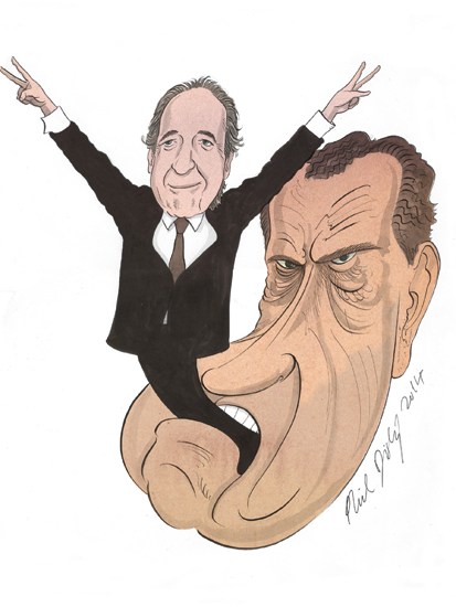 ‘Nixon was always an expositor of the manly virtues, of “strength and resolve”, yet his physical gestures have a lot of daintiness to them,’ he explains. ‘When he tries to go macho, it’s always about ten yards short of the goal line.’