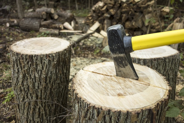 Until a fortnight ago there was a healthy, graceful, 70ft-specimen of Eucalyptus dalrympleana — or mountain gum — in the garden. Now there isn’t. Or rather, the remains of the trunk and branches are lying in sections on the ground. To knock a few quid off the tree surgeon’s bill, I’d grandiosely told them not to bother reducing the trunk and major branches to fire-grate-sized logs. Leave it in rings, I said, and I’ll split them up with an axe. Which they did. The next time I looked out, the men had departed and there were a couple of tons of wood lying in wheels in the sodden grass. The biggest rings, from the base of the trunk, were about two feet in diameter and a foot thick. Not a problem. A joy. I filed a razor-sharp edge on the axe-head, put the two biggest, knottiest-looking rings one on top of the other for a chopping block, and started swinging.