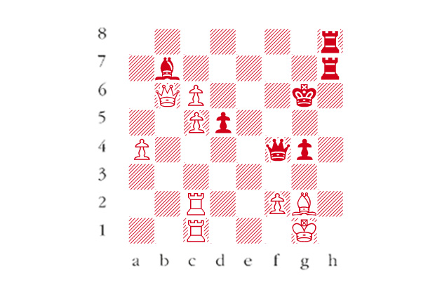 Black to play. This position is from Kramnik-Anand, Nice 2008. Both sides have dangerous-looking attacks. Can you spot Anand’s brilliant move which ensured his got in first? Answers to me at The Spectator by Tuesday 7 January or via email to victoria@spectator.co.uk or by fax on 020 7681 3773. The winner will be the first correct answer out of a hat, and each week I shall be offering a prize of £20. Please include a postal address and allow six weeks for prize delivery.