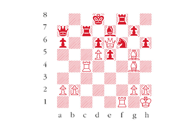 White to play. This position is a variation from Congdon–‘Heinsius’, online game 2014. White has a ferocious attack and now needs to land the killer blow. How can he achieve this? Answers to me at The Spectator by Tuesday 14 January or via email to victoria@spectator.co.uk or by fax on 020 7681 3773. The winner will be the first correct answer out of a hat, and each week I shall be offering a prize of £20. Please include a postal address and allow six weeks for prize delivery.