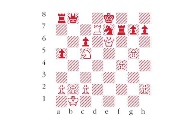 White to play. This position is a variation from Nepomniachtchi-Ivanchuk, Beijing 2013. White has a ferocious attack. How can he land the killer blow? Answers to me at The Spectator by Tuesday 21 January or via email to victoria@spectator.co.uk or by fax on 020 7681 3773. The winner will be the first correct answer out of a hat, and each week there is a prize of £20. Please include a postal address and allow six weeks for prize delivery.