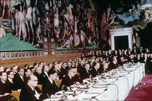 Foreign affairs ministers at the 'Treaty of Rome' creating the European Economic community (EEC) and the Euratom, March 25, 1957 Photo: AFP/Getty