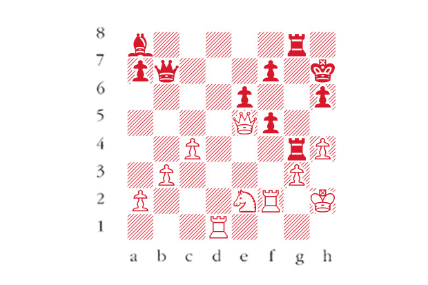 White to play. This position is from Mamedyarov-Aronian, Khanty-Mansisk 2014. White’s next was an ingenious way to demonstrate that his passed pawn on g7 was stronger than Black’s on c3. What did he play? Answers to The Spectator by Tuesday 15 April via email to victoria@spectator.co.uk or by fax on 020 7681 3773. The winner will be the first correct answer out of a hat, and each week I am offering a prize of £20. Please include a postal address and allow six weeks for prize delivery.