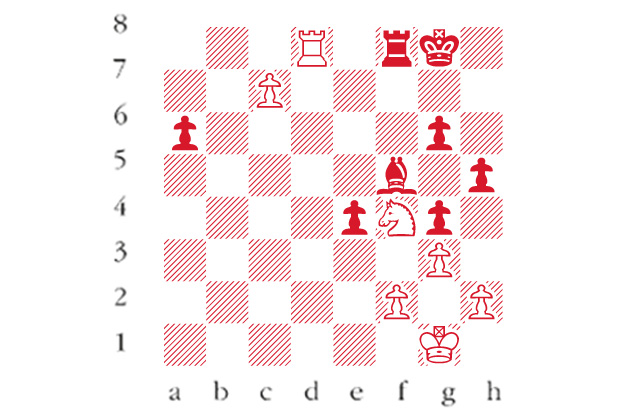 White to play. This is a variation from Caruana-Radjabov, Gashimov Memorial, Shamkir 2014. The advanced White c-pawn gives him an overwhelming position. What is the best way to finish off? Answers to me at The Spectator by Tuesday 20 May or via email to victoria@spectator.co.uk or by fax on 020 7681 3773. The winner will be the first correct answer out of a hat, and each week I am offering a prize of £20. Please include a postal address and allow six weeks for prize delivery.