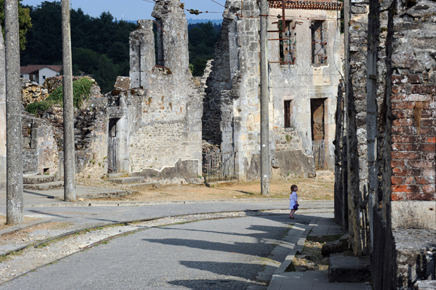 The most striking thing we did in France was to visit Oradour-sur-Glane, the Limousin village where on 10 June 1944 a Panzer division of the SS massacred 642 men, women and children as a reprisal operation against the Resistance. The ‘village martyr’ has been preserved exactly as it was: de Gaulle ordered a new village to be built alongside. On a bakingly hot August day, we joined hundreds of tourists silently walking the roofless streets of what was once an idyllic little town. What takes the air out of your lungs is the familiarity and specificity of the place — the boulangerie, the postbox, the tram rails; the garage where men were rounded up and machine-gunned; still with its metal signs for petrol; the rusted hulks of Citroëns in the street. The worst place of all is the church where the women and children were killed with hand grenades and by shooting and burning. It’s an exquisite medieval building, minus its roof; inside, the bullet holes are everywhere, and there’s a mangled and burned children’s buggy and a fresh, warm sense of horror. The names of the officers and soldiers who committed the atrocity are all known and listed in the Memorial Centre. Some were French, from Alsace, and the whole country was divided about what happened.