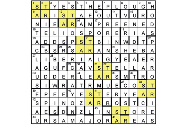 The seven 2×2 squares each used the letters STAR in order, and depicted the seven major stars that make up the GREAT BEAR (URSA MAJOR) in THE PLOUGH (aka the BIG DIPPER).