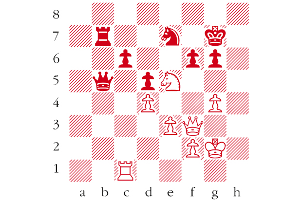 White to play. This is from Petrosian-Rosetto, Portoroz 1958. White’s knight is threatened and appears to lack a safe escape square. What did Petrosian have in mind? Answers to me at The Spectator by Tuesday 21 October or via email to victoria@spectator.co.uk or by fax on 020 7681 3773. The winner will be the first correct answer out of a hat, and each week I am offering a prize of £20. Please include a postal address and allow six weeks for prize delivery.