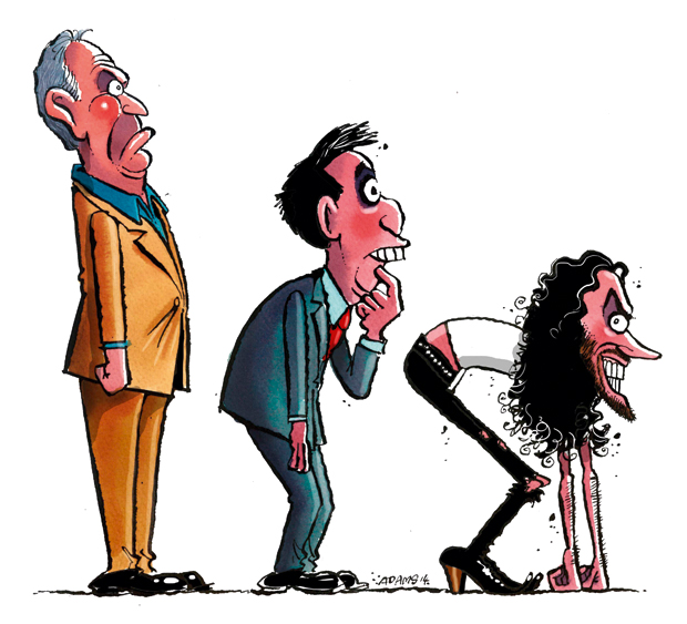 Labour voters feel hope and despair; hope, because the Tories are doing no better than we, and despair, for that same reason. Left-wing politics are resurgent where it matters least — outside the Labour party. A body without a head is just a corpse, and frightening; no one wants to vote for Russell Brand, who thinks the concept of voting is idiotic, as he is. Left-wing politics wears fancy dress (the Million Mask March), occupies the biscuit aisle at Fortnum & Mason (UK Uncut) or is ‘preaching from a mansion’ to a cardboard box (Johnny Rotten on Russell Brand, again).