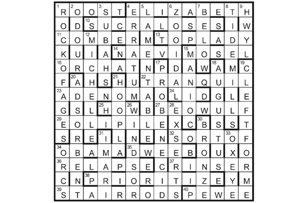‘ROCK OF AGES CLEFT FOR ME’ (1D/19) is a work by AUGUSTUS TOPLADY (18/13). ELIZABETH WINDSOR (4A/26) and MICHELLE OBAMA (12/34A) were each suggested by TOPLADY. Title: associated hymn tune.