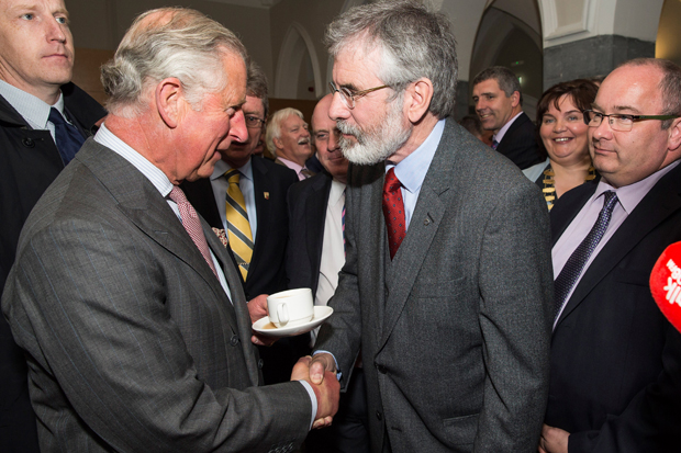 Who benefits from Prince Charles’s handshake with Gerry Adams? Not the victims of IRA violence, including the 18 soldiers who died at Warrenpoint on the same day as Lord Mountbatten was murdered. Not the moderate parties in Ireland, north or south, who never blew up anybody and so can get no kudos for pretending to be sorry about it afterwards. Only Adams (who was a senior IRA commander at the time of the killings) and Sinn Fein. His party has thus been relieved of current unpopularity in the Republic caused by long-running rape accusations, and is suddenly made to look good in the run-up to the centenary of the Easter Rising. I gather the bright idea to involve the royal family in this tasteless choreography came from our own Foreign Office. If they sought to build on the Queen’s wonderful visit in 2011, they made a category error. She healed wounds between Britain and Ireland. Making life easy for the IRA is not the same thing: indeed, it is the opposite.