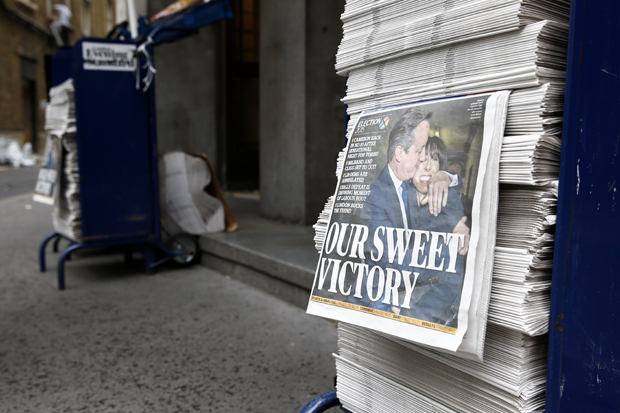 At 1 a.m., I went into Adam Boulton’s programme on Sky News to talk results with Harry Cole. He looked preternaturally young and pretty, and caked in make-up, so that momentarily everything seemed fun and reckless, like in the musical Cabaret. Then the seismic Scottish result came in, Paisley and Renfrewshire South, Douglas Alexander beaten by Mhairi Black. After that, the SNP juggernaut would pause for no one, least of all me and Harry. We went home without appearing, and I found my Mr alone on the sofa, surrounded by Doritos. ‘It’s probably good that you were bumped,’ he said, kindly. ‘You were too drunk to go on telly.’ Thank God for the SNP. Sort of.