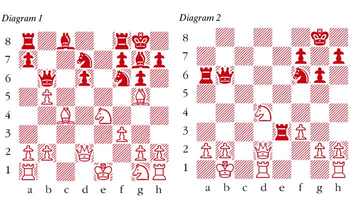 1 d4 Nf6 2 c4 g6 3 Nc3 Bg7 4 e4 d6 5 f3 0-0 6 Be3 c6 7 Bd3 e5 8 d5 b5 9 cxb5 cxd5 10 exd5 e4 11 Nxe4 Nxd5 12 Bg5 Qb6 12 … Qa5+ was seen in Timman-Kasparov, Reykjavik 1988. 13 Qd2 Nd7 14 Bc4 N5f6 (see diagram 1) 15 Nxf6+ 15 Nxd6 is the key test of Black’s idea but Gulko wished to sidestep Kasparov’s opening preparation. 15 … Bxf6 Now White stands well. It was better to play 15 … Nxf6 and keep pieces on the board. 16 Bxf6 Nxf6 17 Ne2 Re8 18 0-0-0 d5 19 Bd3 White had a better line with 19 Bb3 Qxb5 20 Nc3 Qb6 21 Qd4, killing Black’s activity. 19 … a6 20 bxa6 d4 21 Kb1 Re3 Typical of Garry, he plays the most aggressive move, but it looks like he miscalculated. Correct was 21 … Bxa6! 22 Bxa6 Rxa6 23 Nxd4 Rea8 24 Nc2 Rxa2 25 Qd4! Qe6 26 Rhe1 Qf5 27 Qd3 Qc5 28 Qd4 Qf5 29 Qd3 and neither side can avoid the repetition. 22 Bc4 Bxa6 23 Bxa6 Rxa6 24 Nxd4 (see diagram 2) 24 … Re8 Kasparov had planned 24 … Rea3, overlooking 25 Nc2 Rxa2 26 Qd8+ Qxd8 27 Rxd8+ Kg7 28 Na3 and White wins. 25 Ne2 Played to restrict the activity of the black knight. 25 … Rb8 26 Nc3 Qb4 27 Rhe1 Rd6 28 Qc2 Rdb6 29 Re2 Qf4 30 h3 Rc6 31 Qd2 Qf5+ 32 Ka1 Rb7 33 Qh6 White will slowly improve his position, not giving Black any chances. 33 … Rc8 34 Red2 Qa5 35 Qe3 Kg7 36 g4 Re8 37 Qd4 Rd7 38 Qf2 Rc7 39 Rd3 Ra8 40 Qd2 h6 41 Rd6 Rc4 42 Rd4 Rac8 43 Kb1 Qe5 44 f4 Qe6 45 Qe2 Rxd4 46 Rxd4 Qb6 47 Qd2 Qa6 48 Qd3 Qc6 49 a3 Qg2 50 Rd6 White gangs up on the knight, the final point being 50 … Ne8 51 Rxg6+! fxg6 52 Qd7+. 50 … Rb8 51 Qe2 Qh1+ 52 Ka2 Re8 53 Qd3 Re1 54 Qd4 Black resigns
