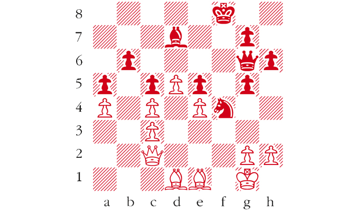 Black to play. This is from Spassky-Fischer, World Championship, Reykjavik (Game 5) 1972. This is probably the most famous ‘dark-square’ Nimzo-Indian game of all-time. How did Fischer finish off? Answers to me at The Spectator by Tuesday 23 June or via email to victoria@spectator.co.uk or by fax on 020 7681 3773. The winner will be the first correct answer out of a hat, and each week I am offering a prize of £20. Please include a postal address and allow six weeks for prize delivery.