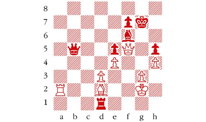 White to play. This position is from Vachier-Lagrave-Caruana, Norway Blitz 2015. How did White finish off at once? Answers to me at The Spectator by Tuesday 30 June or via email to victoria@-spectator.co.uk or by fax on 020 7681 3773. The winner will be the first correct answer out of a hat, and each week I am offering a prize of £20. Please include a postal address and allow six weeks for prize delivery.