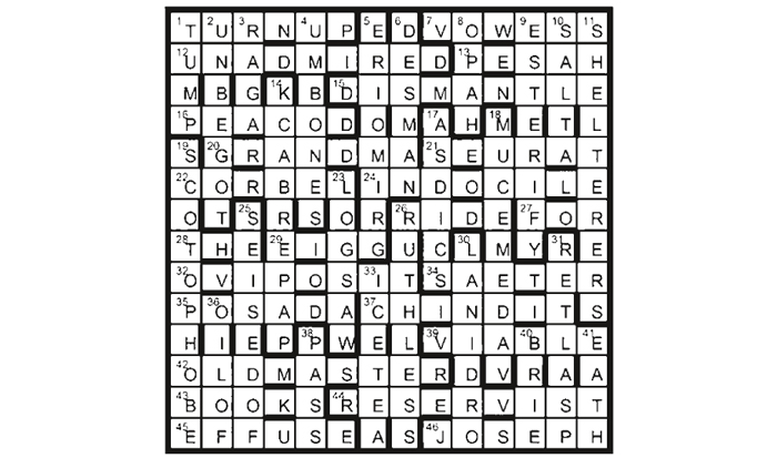 The unclued Down lights are books, entered in reverse as indicated by the phrase TURN-UP FOR THE BOOKS (1A 27 28 43).