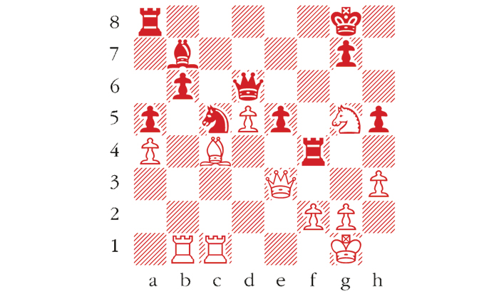 Black to play. This position is a variation from Kramnik-Naiditsch, Dortmund 2015. How can Black make a decisive material gain? Answers to me at The Spectator by Tuesday 21 July or via email to victoria@spectator.co.uk or by fax on 020 7681 3773. The winner will be the first correct answer out of a hat, and each week there is a prize of £20. Please include a postal address and allow six weeks for prize delivery.