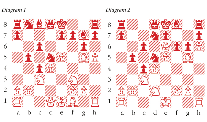 1 d4 Nf6 2 c4 g6 3 Nc3 d5 4 Nf3 Bg7 5 h4 Enterprising but not new. The primary highways of the Grünfeld are introduced by 5 cxd5 and 5 Bg5. 5 … c6 6 Bg5 dxc4 Perhaps this voracity is out of place. 6 … Ne4 is more in the spirit of the Grünfeld. As played, Black’s greed gives White’s h4 an immediate relevance. 7 e4 b5 8 e5 Nd5 9 h5 (see diagram 1) 9 … Bg4 The critical line in what has become a gambit scenario is to challenge White’s bishop with 9 … h6. However, after 10 hxg6 hxg5 11 Rxh8+ Bxh8 12 gxf7+ Kxf7 13 Nxg5+ Kg6 14 Qf3 Nxc3 15 bxc3 Kxg5 (Nepomniatchi-Giri, Beijing 2013) the continuation 16 Be2 followed by Kd2 gives a winning attack. 10 h6 Bf8 11 Be2 Nd7 12 Nd2 Be6 13 Bg4 Bxg4 14 Qxg4 f6 By disrupting his own king’s field, Black is playing with fire. 14 … N7b6 was about equal. 15 Qe6 (see diagram 2) 15 … Qb6 Black cannot play 15 … fxg5 due to 16 Nde4 Qb6 17 Nd6+ Kd8 18 Nf7+ Kc7 19 Qxd5! which gives White a winning position but not 19 Nxh8 when 19 … Nf4 turns the tables. 16 exf6 N5xf6 17 Bxf6 Nxf6 18 Nde4 Nxe4 19 Nxe4 Kd8 20 Nc5 Qc7 21 d5 Black resigns