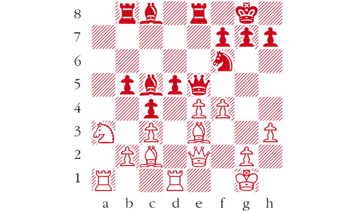 Black to play. This position is a variation from Maslak-Smerdon, Pardubice 2007. Black has powered through on the kingside. How can he finish off? Answers to me at The Spectator by Tuesday 8 September or via email to victoria@spectator.co.uk or by fax on 020 7681 3773. The winner will be the first correct answer out of a hat, and each week there is a prize of £20. Please include a postal address and allow six weeks for prize delivery.