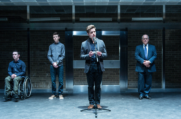 Christopher Shinn is a subtle and gifted American dramatist whose monumental political satire, Now or Later, was directed by Dominic Cooke at the Royal Court in 2008. Cooke has reassembled some of the old cast to have a crack at Shinn’s new play Teddy Ferrara, which is set on a university campus among the lesbian, gay, bisexual, transgender and queer community (further titles to be added later). We follow gay men in various crises. One is incapable of commitment, one is in a wheelchair, one is bisexual but has a sex-bomb girlfriend, one is a suicidal loner who uses the internet to broadcast images of his engorged willy to the watching world. The disjointed scenes are further broken up by endless incoming texts and throbbing phone messages which remind us that the web has multiplied and trivialised our romantic lives. Which is hardly news. Nor is Shinn’s discovery that campus puritans are as shrill and doctrinaire as the early Bolsheviks.