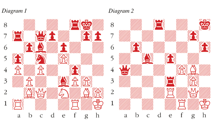 1 c4 f5 2 d4 Nf6 3 g3 e6 4 Bg2 Bb4+ 5 Nd2 0-0 6 Ngf3 a5 7 0-0 b6 8 Ne5 Ra7 Larsen took an almost malicious delight in confusing booked-up opponents by injecting the position with original problems for both sides to solve. 9 Nd3 Bb7 10 Nf3 Be7 11 b3 Ne4 12 Bb2 Bf6 13 a3 c5 14 e3 Nc6 15 Nfe5 cxd4 16 exd4 Nxe5 17 dxe5 Be7 18 a4 A rare strategic misjudgment from the maestro. Larsen’s oddness of play had a mysteriously confusing effect on even experienced opponents. Botvinnik wants to fix b6 as a target but this is misguided. 18 … Qc7 19 Qc2 Bc6 20 f3 Nc5 21 Nf4 Bg5 22 Ne2 Be3+ 23 Kh1 f4 (see diagram 1) It is disorienting to witness Botvinnik getting outplayed strategically. White’s game continues to subtly deteriorate. 24 Nd4 A mistake. Botvinnik seriously underestimates the danger to his king. His plan is too simple and instead, 24 Rad1 was necessary, intending 24 … fxg3 (24 … Raa8 is correct) 25 Qc3! Bg5 26 hxg3, when White’s pieces suddenly unravel with advantage. 24 … fxg3 25 Nxc6 dxc6 26 hxg3 Qf7 27 Bh3 Rd8 28 Bc3 Rad7 29 Ra2 Rd3 This is good but 29 … Rd1 was even stronger. 30 b4 axb4 31 Bxb4 Qh5 32 Qh2 Qxe5 33 f4 Qe4+ 34 Qg2 Qxc4 35 Bxc5 Bxc5 Black needs his e-pawn to undermine f4. Hence 35 … Qxc5 36 Bxe6+ Kh8 would be inferior. 36 Qxc6 Re3 37 Raf2 Kh8 38 Qg2 h6 39 Bg4 Qxa4 40 Re2 e5 (see diagram 2) Now White’s king becomes hopelessly exposed. 41 Ra2 Qc4 42 Rc2 Qb4 43 Bf5 exf4 44 gxf4 Re1 45 Re2 Rxf1+ 46 Qxf1 Rf8 47 Be4 Qd4 48 Kg2 Qf6 Forcing the pawn to f5 weakens the dark squares around the white king further. If the f-pawn goes, even the pure opposite-coloured bishop endgame won’t save White. 49 f5 Qg5+ 50 Kh1 Qh4+ 51 Kg2 Rd8 52 Bc2 Rd4 White resigns 53 Re8+ Kh7 54 f6+ g6 55 Bxg6+ Kxg6 56 Qb1+ Kxf6 57 Qf1+ Kg7 and Black wins.