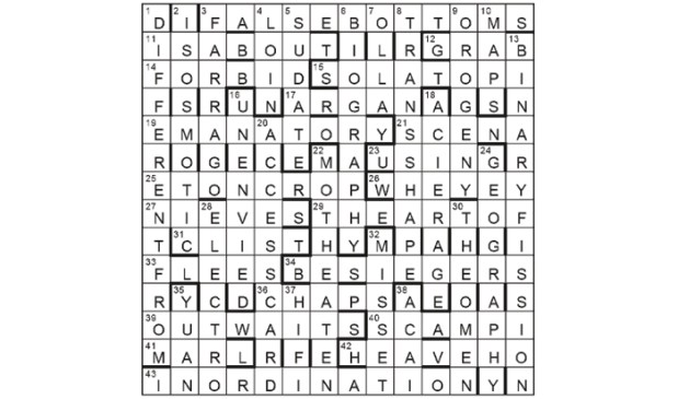 The title suggests BACK NUMBERS (8/15). Remaining unclued lights contain ‘back numbers’: GENEVESE (1A), MARXIST (20), GENETTE (24), XENON (37), GROWTH (42) and MENINGES (43). 8 and 15 were to be shaded.