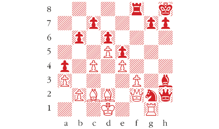 Black to play. This position is from Wright-Keene, Slater Tournament, Southend 1968. Black’s next move destroyed the white kingside and led to a quick win. What did he play? We regret that because of the Christmas printing schedule, this is not a prize puzzle.