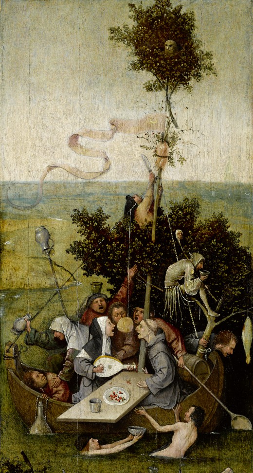 Obviously, Hell was Bosch’s thing, and he made it look if not exactly fun then certainly entertaining. It was surely the pleasure of looking at his scenes of sin and eternal punishment, rather than the moral message, that quickly won Bosch a European reputation (those ‘Visions of the Hereafter’ were bought by a Venetian cardinal early in the 16th century). His major works dwelled on the follies of humanity, and their dreadful consequences. This is the theme of ‘The Haywain’ (c.1510–15), in which devilish creatures, including a fish with legs, drag a wagon piled with straw. The people of the world scrabble for this worthless stuff. To the right is their likely destination, a place of fiery torment. Nonetheless, it is an utterly beguiling spectacle.