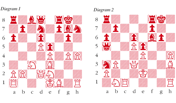 1 d4 Nf6 2 c4 g6 3 Nc3 Bg7 4 e4 d6 5 f3 0–0 6 Be3 e5 7 Nge2 c6 8 d5 cxd5 9 cxd5 a6 10 Qd2 Nbd7 11 g4 h5 12 h3 Nh7 13 h4 This move constitutes a serious inaccuracy. White should play either 13 Rg1 or 13 0‑0‑0. 13 … hxg4 14 fxg4 (see diagram 1) 14 … Nhf6 Gligoric missed a promising opportunity with 14 … Nb6! when Black threatens … Bxg4 and also … Nc4 when White has only unpleasant options. 15 Bh3 Nb6 16 Bg5 Nc4 17 Qd3 Qc7 17 … Nxb2? allows White to greatly increase pressure on f6 e.g. 18 Qf3! b5 19 h5! with a strong attack. 18 b3 Na3 19 Rc1 Bxg4 Gligoric’s move walks into Tal’s devious trap, but his position is already precarious. 20 Bxf6 Bxe2 21 Kxe2 Bxf6 22 Nb1 Qa5 (see diagram 2) 23 b4 This clearance/double attack shot wins Black’s knight. 23 … Qxb4 24 Nxa3 Bxh4 Black gets three pawns for the piece which is not so bad. His trouble comes not from material considerations, but from a lack of king safety. 25 Nc4 b5 26 Nb6 Rad8 27 Bf5 Bg5 28 Rcg1 Qb2+ 29 Kf3 Bf4 30 Rg2 Qb4 31 Nd7 Rc8 32 Nf6+ This wins, but immediately decisive is 32 Bxg6 fxg6 (32 … Rc3?? is refuted by 33 Bf5+ Bg3 34 Rxg3 mate) 33 Rxg6+ Kf7 34 Rf6+ Kg7 35 Rg1+ Kh8 36 Rxf8+ Rxf8 37 Nxf8. 32 … Kg7 33 Nh5+ Kg8 34 Bxc8 Rxc8 35 Rc2 Rxc2 36 Qxc2 Qa3+ 37 Qb3 Qxb3+ 38 axb3 gxh5 39 Ra1 h4 40 Kg4 Be3 41 Rxa6 Bc5 42 Kxh4 f5 43 exf5 e4 44 b4 Bxb4 45 Kg5 Kf7 46 Ra7+ Ke8 47 f6 Black resigns