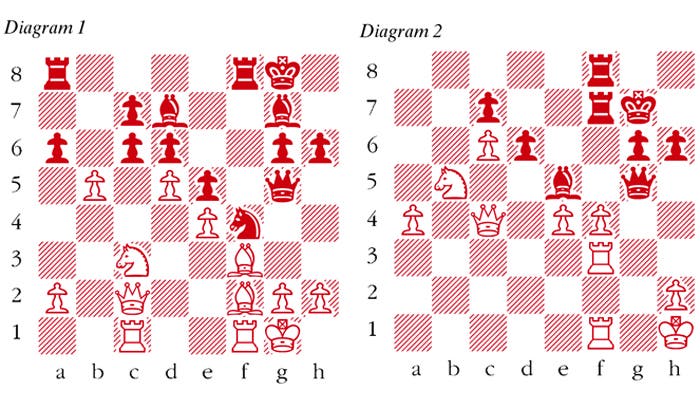 1 d4 Nf6 2 c4 g6 3 Nc3 Bg7 4 e4 d6 5 Be2 0-0 6 Nf3 e5 7 d5 Nbd7 8 Bg5 h6 9 Bh4 a6 10 Nd2 Qe8 11 0-0 Nh7 12 b4 Ng5 13 f3 f5 14 Bf2 Qe7 We have a typical King’s Indian Defence set up. In this particular case White’s queenside initiative slightly eclipses Black’s kingside attacking chances. 15 Rc1 Nf6 16 c5 Bd7 17 Qc2 Nh5 18 b5 Tal is quick to pick a fight, but objectively stronger is 18 Kh1 Nf4 19 Bc4 (intending c6) 19 … Kh8 20 Be3 with strong queenside pressure for White. 18 … fxe4 19 Ndxe4 Nxe4 20 fxe4 Nf4 21 c6 The queenside opens, but at the same time, Fischer begins to generate kingside play. 21 … Qg5 22 Bf3 bxc6 (see diagram 1) 23 dxc6 This move allows Black’s kingside play to flare up. Correct was the remarkable counterintuitive zwischenzug 23 h4!! After 23 … Nh3+ 24 Kh2 Qe7 25 Bg3! Nf4 26 dxc6 Be8 27 a4 Bf6 28 Bxf4! exf4 29 Nd5 Qd8 30 b6! Bd4 31 Kh3! cxb6 32 Bg4! suddenly c7 is coming and Black is busted. 23 … Bg4 24 Bxg4 Qxg4 25 Be3 axb5 26 Bxf4 exf4 27 Nxb5 Rf7 Too slow. 27 … f3! is fine for Black. 28 Qc4 Rc8 Fischer goes passive and begins to lose the thread of the position, as the initiative swings to White. Black’s rook needs to remain on the a-file to try and slow White’s passed a-pawn. Therefore necessary was 28 … Kf8. 29 Rf3 Be5 30 Rcf1 Kg7 31 a4 Ra8 32 Kh1 Qg5 33 g3 Raf8 34 gxf4 (see diagram 2) 34 … Bxf4 This move enhances the pin on the f-file. After 34 … Rxf4?? 35 Nxc7 a mega fork on e6 can’t be prevented, so Fischer had to try 34 … Qg4. 35 Nd4 Now the monster e6 fork is unavoidable. 35 … Qh4 36 Rxf4 Rxf4 37 Ne6+ Kh8 38 Qd4+ R8f6 Also losing are: a) 38 … Kg8 39 Qg7 mate, b) 38 … R4f6 39 Nxf8 and c) 38 … Qf6 39 Rxf4 Qxd4 40 Rxf8+ Kh7 41 Nxd4 leaves White up a rook and a knight. 39 Nxf4 Kh7 40 e5 dxe5 41 Qd7+ Black resigns