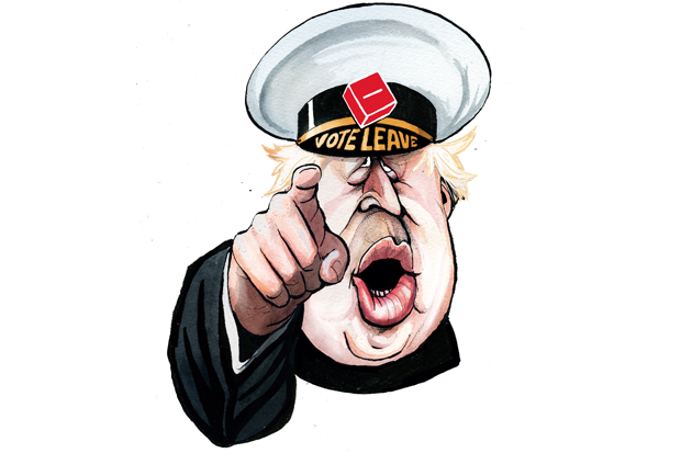 Boris says he would have handled the renegotiation very differently: sticking to the original demands and explaining that, without them being met, the government could not recommend a vote to Remain. ‘I would have gone with the Bloomberg text and said: this is what we want, give it to us or the baby gets it.’ But, he argues, ‘Negotiation didn’t produce anything, so there is no alternative — if Vote Leave is not the right answer then what is?’ Or, as he later puts it in one of his less Periclean moments, ‘It’s shit or bust.’