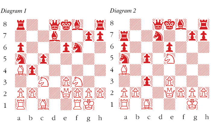 1 d4 d5 2 c4 dxc4 3 Nf3 Nf6 4 e3 e6 5 Bxc4 c5 6 0-0 Nc6 7 Qe2 a6 Black is mixing systems. 6 … a6 is the main line, whereas combining it with an early … Nc6 creates a few problems for him. 8 Nc3 b5 9 Bb3 b4 This is the move which brings the roof down on Black’s head, although things are already not that easy for him. 10 d5 Na5 Relatively best. The alternatives are worse, for instance 10 … exd5 11 Nxd5 Nxd5 12 Rd1 Qc7 13 Bxd5 leaves Black in serious trouble, as he cannot complete his development satisfactorily. 11 Ba4+ Bd7 12 dxe6 fxe6 (see diagram 1) 13 Rd1 A typical Alekhine piece sacrifice. 13 … bxc3 14 Rxd7 Nxd7 15 Ne5 Ra7 (see diagram 2) 16 bxc3 This quiet recapture is a remarkable move. 16 Qh5+ was the obvious continuation when 16 … g6 17 Nxg6 hxg6, when White can obtain a draw by repetition with 18 Qxg6+ Ke7 19 e4 Bh6! (the only satisfactory defence to the threat of Bg5+) 20 Bxh6 Qg8 21 Bg5+ Kf8 22 Bh6+ Ke7 23 Bg5+ Kf8 etc. 16 … Ke7 This is the critical point of the game. This move, trying to escape the pin on the d7-knight, is bad. The obvious and natural move is 16 … g6 with unclear play. 17 e4 Threatening 18 Bxd7 Rxd7 19 Bg5+. 17 … Nf6 18 Bg5 Qc7 19 Bf4 Qb6 20 Rd1 g6 This stops a subsequent Qh5 and also attempts to develop the kingside, but now the weakness of the f6-knight is fatal. 21 Bg5 Bg7 22 Nd7 Rxd7 Or 22 … Qc7 23 e5, winning easily. 23 Rxd7+ Kf8 24 Bxf6 Bxf6 25 e5 Black resigns If the bishop moves, there is a deadly check on f3.
