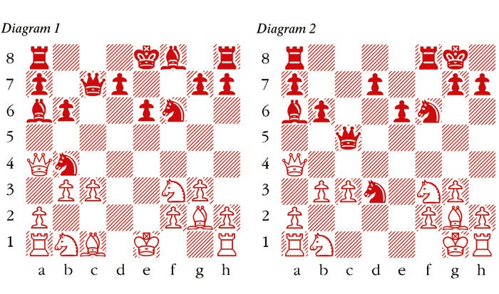 1 e4 c5 2 c3 Nf6 3 e5 Nd5 4 d4 cxd4 5 Qxd4 For White, the entire line looks like ambition outstripping ability. The 5 Qxd4 line isn’t played very often, and is mainly used as a surprise weapon to throw Black off, theoretically. 5 … e6 6 Nf3 Nc6 7 Qe4 b6 8 g3 White decides to neutralise Black’s coming … Bb7 with a fianchettoed bishop on g2. However what he underestimated, or failed to consider, was that Black is by no means obliged to play his bishop to b7, since a6 will be available. 8 … Qc7 9 Bg2 Ba6 The wizard’s spells compel absolute obedience. White is unable to castle. 10 b3 f5 11 exf6 Nxf6 12 Qa4 Nb4! (see diagram 1) Black’s knight works double duty, protecting the a6-bishop, while threatening nasty checks on d3 and c2. 13 Bf4 The only move: a) 13 cxb4?? would be a mega-blunder: 13 … Qxc1 is mate. b) 13 Kd1 Ne4 14 Be3 Nxc3+ 15 Nxc3 Qxc3 16 Rc1 Qd3+ 17 Nd2 Qe2 mate. 13 … Nd3+ 14 Kf1 Qc8 Black’s move is much stronger than 14 … Nxf4+? 15 Qxa6 Nxg2 16 Kxg2 Be7 when White may well survive. 15 Kg1 Bc5 16 Be3 0-0 17 Bxc5 White’s defenders are sluggish. 17 Nbd2 Nd5 18 Bxc5 Nxc3 19 Qh4 Ne2+ 20 Kf1 Qxc5 21 Ne4 Qc2 22 h3 Ndc1 23 Ne1 Qb2 is game over. 17 … Qxc5 (see diagram 2) 18 Nd4 Or 18 Qd4 Ne4 19 Qxc5 bxc5 20 h3 d5 21 Rh2 Nc1 22 c4 dxc4 23 Nbd2 Ne2+ 24 Kf1 N2xg3+! 25 fxg3 Nxd2+ 26 Ke2 c3+ 27 Ke3 Rad8 and White is crushed. 18 … Qe5 19 Bxa8 White’s last move is played with the thought: we can take our wealth to our graves. Instead, if 19 Nd2 Nxf2 20 Bxa8 N6g4 21 N4f3 Qe2 22 h3 Nd1! and White can resign. 19 … Qe1+ 20 Kg2 Qxf2+ 21 Kh3 Nc5 White resigns After 22 Qa3 Rxa8 light squares are a commodity in short supply in White’s camp, and after 23 Qc1 Bb7 24 Rg1 Nd3 25 Qf1 Qe3 there is no defence to the threat of … Qh6 mate. However, even more clear is 21 … Nf4+! 22 gxf4 Nh5 which forces a quick mate.