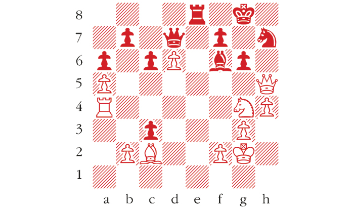 White to play. This position is from Dubov-Yandemirov, Russian Team Championship, Sochi 2016. How can White exploit the unfortunate placing of the black pieces? Answers to me at The Spectator by Tuesday 24 May or via email to victoria@spectator.co.uk or by fax on 020 7681 3773. There is a prize of £20 for the first correct answer out of a hat. Please include a postal address and allow six weeks for prize delivery.