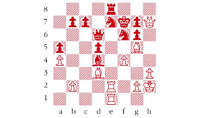 White to play. This position is from Staunton-Horwitz, London (Game 3) 1846. How did White conclude his attack? Answers to me at The Spectator by Tuesday 19 July or via email to victoria@spectator.co.uk. There is a prize of £20 for the first correct answer out of a hat. Please include a postal address and allow six weeks for prize delivery.