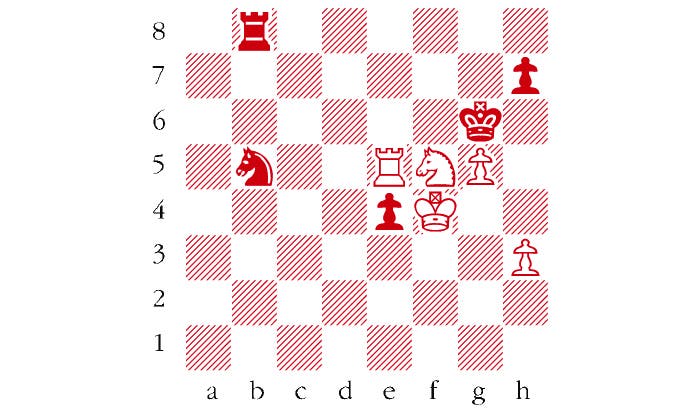 White to play. This position is from So-Giri, Bilbao Masters 2016. How did White make the most of his active rook and knight? Answers to me at The Spectator by Tuesday 2 August or via email to victoria@spectator.co.uk. There is a prize of £20 for the first correct answer out of a hat. Please include a postal address and allow six weeks for prize delivery.