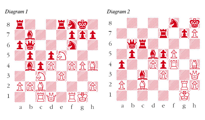 1 d4 Nf6 2 c4 e6 3 Nc3 Bb4 4 Nf3 b6 5 e3 Bb7 6 Bd3 0-0 Viable alternatives are 6 … Ne4 and 6 … c5. 7 Bd2 d5 8 cxd5 exd5 9 0-0 Nbd7 10 Rc1 a6 11 Ne5 Re8 I have some experience of this variation. In the game Keene-Seuss, Ybbs 1968 Black continued with the less useful 11 … Bd6 12 f4 Ne4 13 Nxe4 dxe4 14 Bc4 Nf6 15 Qb3. Short avoids playing 11 … Bd6, a move which makes it almost impossible for Black ever to contemplate trading off White’s aggressive knight on e5. 12 f4 This attacking formation for White, a kind of Deferred Stonewall, is well known from the prototype launched in Pillsbury-Tarrasch, Hastings 1895. 12 … Nf8 13 Be1 c5 14 Bh4 c4 15 Bc2 b5 16 g4 Qb6 (see diagram 1) The tenor of the middlegame has now been established. White has lined up all his forces against the black king. Meanwhile, Black will try and cash in with his mobile queenside majority of pawns. 17 g5 Ne4 It is important to place an obstacle in the path of White’s bishop on c2. 18 Nxe4 dxe4 19 Qe2 Bd5 20 Qg2 Qb7 21 f5 Nd7 22 Ng4 Kh8 23 Bg3 Rac8 24 Qh3 f6 25 g6 Nf8 26 Rf2 Rc6 27 Rcf1 a5 28 Rg2 a4 29 Rf4 c3 30 bxc3 Bxc3 31 Bh4 Qb6 Both sides have implemented their mirror-image breakthroughs. However, in spite of the extreme complexity of the position chances remain balanced. 32 gxh7 Re7 Better is 32 … Rec8 since White’s next coup should win for him. 33 Ne5 fxe5 (see diagram 2) 34 Bxe7 Here he misses an immortal finish. He should have played 34 f6 gxf6 35 Bxe4 Bxe4 (for the refutation of 35 … Bxa2, see this week’s puzzle) 36 Bxf6+ mates. 34 … exf4 35 Bxf8 Bxd4 This sacrifice now places White in danger. 36 Qg4 36 f6 Bxf6 37 Qd7 is the last chance. 36 … Rc7 37 Qh5 f3 38 Rg4 Be5 Missing 38 … Bxe3+ and 39 … Qd4 with a completely winning position. 39 Bc5 Inspired but inaccurate. 39 Qe8 forces a draw. 39 … Qh6 Not falling for a capture on c5 when White has Qe8+ followed by Rh4+. 40 Qe8+ Kxh7 41 Qxe5 Rxc5 42 Qe7 f2+ 43 Kg2 Bc4 44 Kxf2 Qxh2+ White resigns