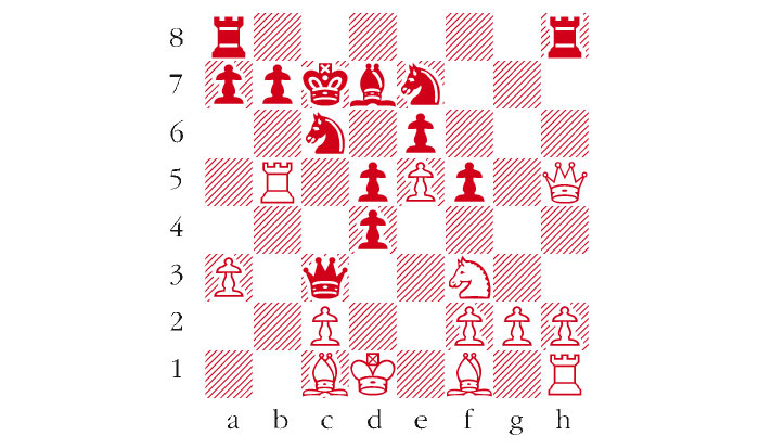 White to play. This is from Tal-Botvinnik, World Championship (Game 12), Moscow 1961. Tal’s next move did not force an immediate win but gained sufficient material for him to prevail. What was it? Answers to me at The Spectator by Tuesday 11 October or via email to victoria@spectator.co.uk. There is a prize of £20 for the first correct answer out of a hat. Please include a postal address and allow six weeks for prize delivery.