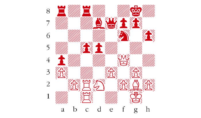 Black to play. This position is from Nakamura-Carlsen, chess.com Blitz Final 2016. The position looks quiet but after Black’s next move White resigned at once. Can you see it? Answers to me at The Spectator by Tuesday 8 November or via email to victoria@spectator.co.uk. There is a prize of £20 for the first correct answer out of a hat. Please include a postal address and allow six weeks for prize delivery.