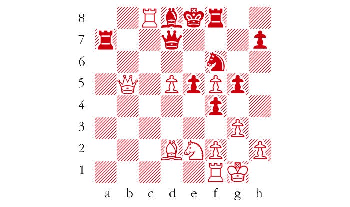White to play. This is a position from Carlsen-Shirov, Biel 2011. Can you spot Carlsen’s crushing blow? Answers to me at The Spectator by Tuesday 15 November or via email to victoria@spectator.co.uk. There is a prize of £20 for the first correct answer out of a hat. Please include a postal address and allow six weeks for prize delivery.