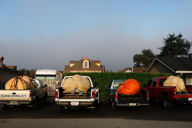 It was pumpkin season and the fields were dotted with swollen, pimply gourds. A 2,000lb beast had been brought in by truck and crane, and the coastal roads were jammed up with locals coming to see it. Smaller pumpkins had been carved and placed on verandas while ‘Trumpkins’ — with angry, orange faces and pale, pithy hair — joined the line-up of ghouls and other ghastlies.