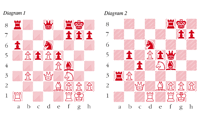 1 e4 c5 2 Nf3 d6 3 d4 cxd4 4 Nxd4 Nf6 5 Nc3 a6 6 Be2 e5 7 Nb3 Be7 8 Be3 Be6 9 Nd5 Nbd7 10 Qd3 0-0 11 c4 b5 12 Nd2 This is somewhat unusual and the natural 12 cxb5 is almost always preferred. 12 … Nc5 13 Bxc5 dxc5 14 b3 Bxd5 15 cxd5 Ne8 Black starts the knight off on a manoeuvre round to d6. This is an ideal square for the black knight is it blocks the white d-pawn without its own mobility being restricted. 16 0-0 Nd6 17 a4 Bg5 18 Nf3 Bf4 19 axb5 (see diagram 1) 19 … f5 Black realises that he can get his initiative on the kingside going at once. 20 exf5 fails to 20 … e4. 20 Nd2 Qg5 Vachier-Lagrave gets a little carried away. 20 … axb5 was fine for Black. 21 Rad1 This is somewhat feeble. A much better test of Black’s idea is 21 Nc4 when 21 … fxe4 22 Qh3 Nxb5 23 Nb6 results in a complex position where White is not worse. 21 … axb5 22 exf5 Ra3 23 Ne4 c4 24 Qc2 Anand seems to have completely lost the thread of the position. 24 Qf3 kept White very much in the game. After 24 … Qh6 25 g3 Rxb3 26 Qg2 Black stands well but the position is complicated and White has good practical counterchances. 24 … Qxf5 (see diagram 2) 25 Qb2 Anand doubtless planned 25 Bf3 but then 25…Rxb3 26 Qe2 Rxf3 is crushing. For example : 27 Nxd6 ( not 27 gxf3 Qh3) 27…Qh5 28h3 Rf6! 29 Nxb5 Qxh3! winning. 25 … Rxb3 26 Qxb3 This queen sacrifice is hopeless but White was by now out of good ideas. 26 … cxb3 27 Nxd6 Qg6 28 Nxb5 e4 29 d6 b2 30 Nd4 Qxd6 31 Bc4+ Kh8 32 Ne6 Bxh2+ 33 Kh1 Rxf2 34 Ng5 Bg3 White resigns